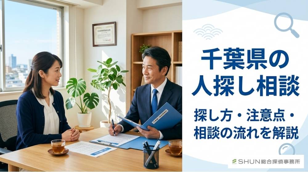 費用面が気になる方は千葉県で人探しを探偵に依頼すると費用はいくら?料金相場と失敗しない相談方法、依頼先選びで迷う方は千葉県で人探しを依頼する探偵の選び方|失敗しないチェックポイントを確認してから相談すると判断しやすくなります。
