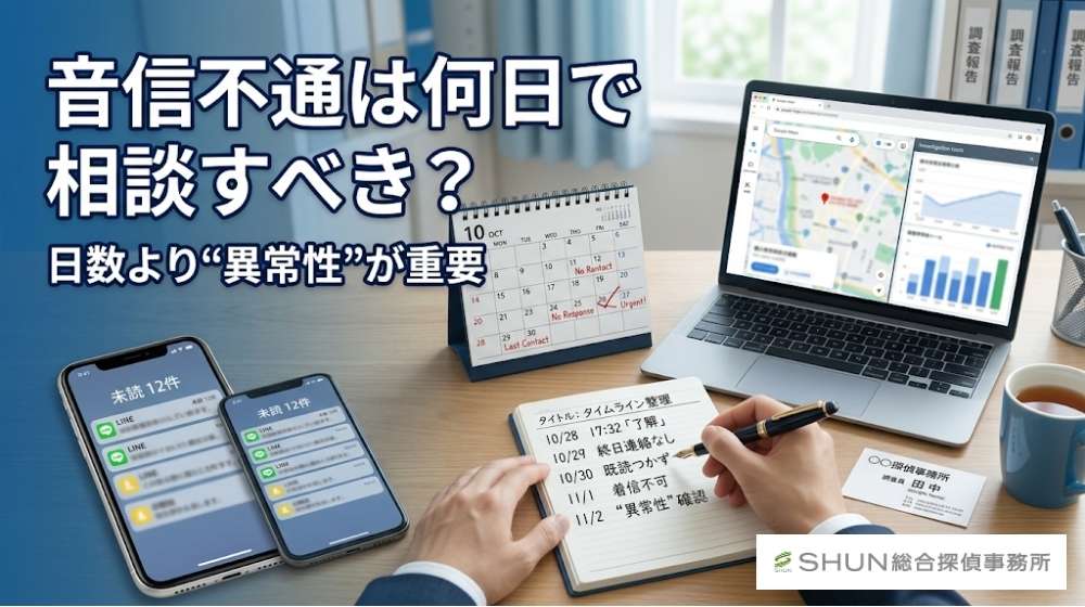 音信不通は何日で探偵に相談すべきか。多くの方がその答えを「3日」「1週間」といった数字に求めますが、実際には一律の日数では判断できません。
