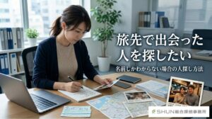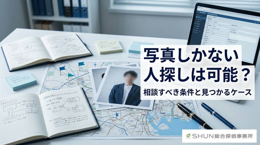 この事例が示しているのは、写真しかないように見えるケースでも、写真の背景・出会った状況・会話の記憶などを丁寧に整理すれば、人探しの糸口が見えてくることがあるという点です。そしてもう一つ大切なのは、SHUN総合探偵事務所では、単に「見つけて終わり」にするのではなく、相手の意思を確認しながら、依頼者さまと対象者を適切な形でつなぐところまで意識して対応しているという点です。